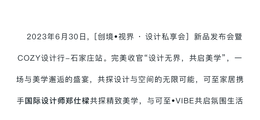 創(chuàng )境·視界|新品發(fā)布會(huì )暨COZY設計私享會(huì )·石家莊站圓滿(mǎn)成功!
